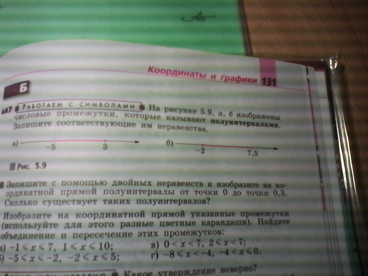 На рисунке 5.9 а б изображены числовые промежутки, которые называют полуинтервалами. Запиши соответствующие им неравенства.