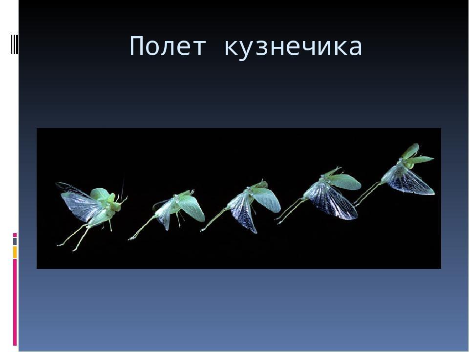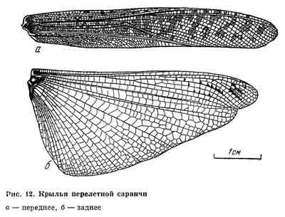 У кузнечика, как и у большинства насекомых, две пары крыльев. Передние крылья кожистые и выполняют роль надкрыльев. Их задача защищать более нежную вторую пару. Это летательные крылья. Жилкование прямое. Задние крылья гораздо шире передних, перепончатые, с радиально расходящимися продольными жилками. На спине задние крылья складываются веером и прикрываются первой парой.