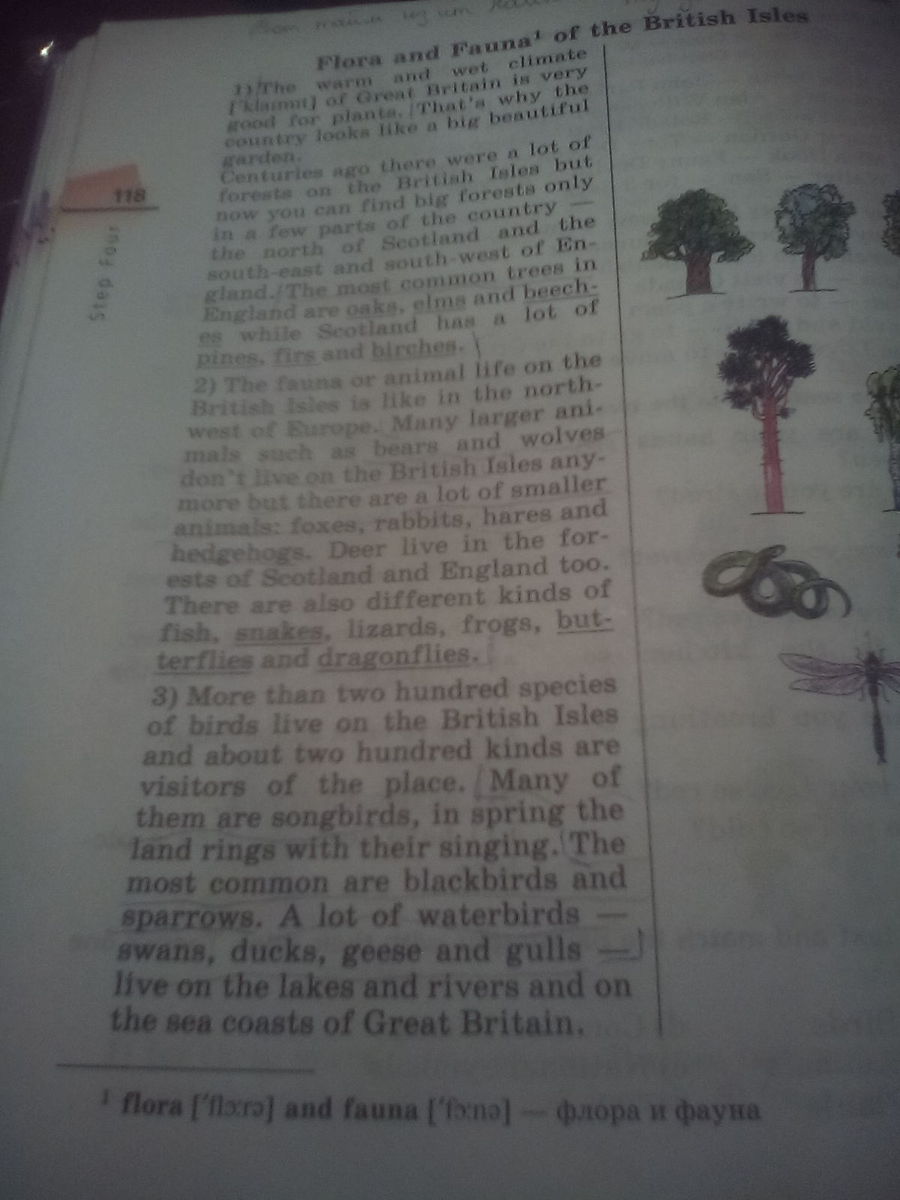1) Теплый и влажный климат Британии очень хорош для растений.Вот почему страна выглядит как большой и красивый сад.Много веков назад здесь,на Брит.о-вах были леса,но теперь вы сможете их найти только в некоторых частях страны-- Северной Шотландии, на юго-востоке и юго-западе Англии.Наиболее распространенные деревья Англии-дубы, вязы и буки, в то время как Шотландия имеет много сосен, елей и берез.