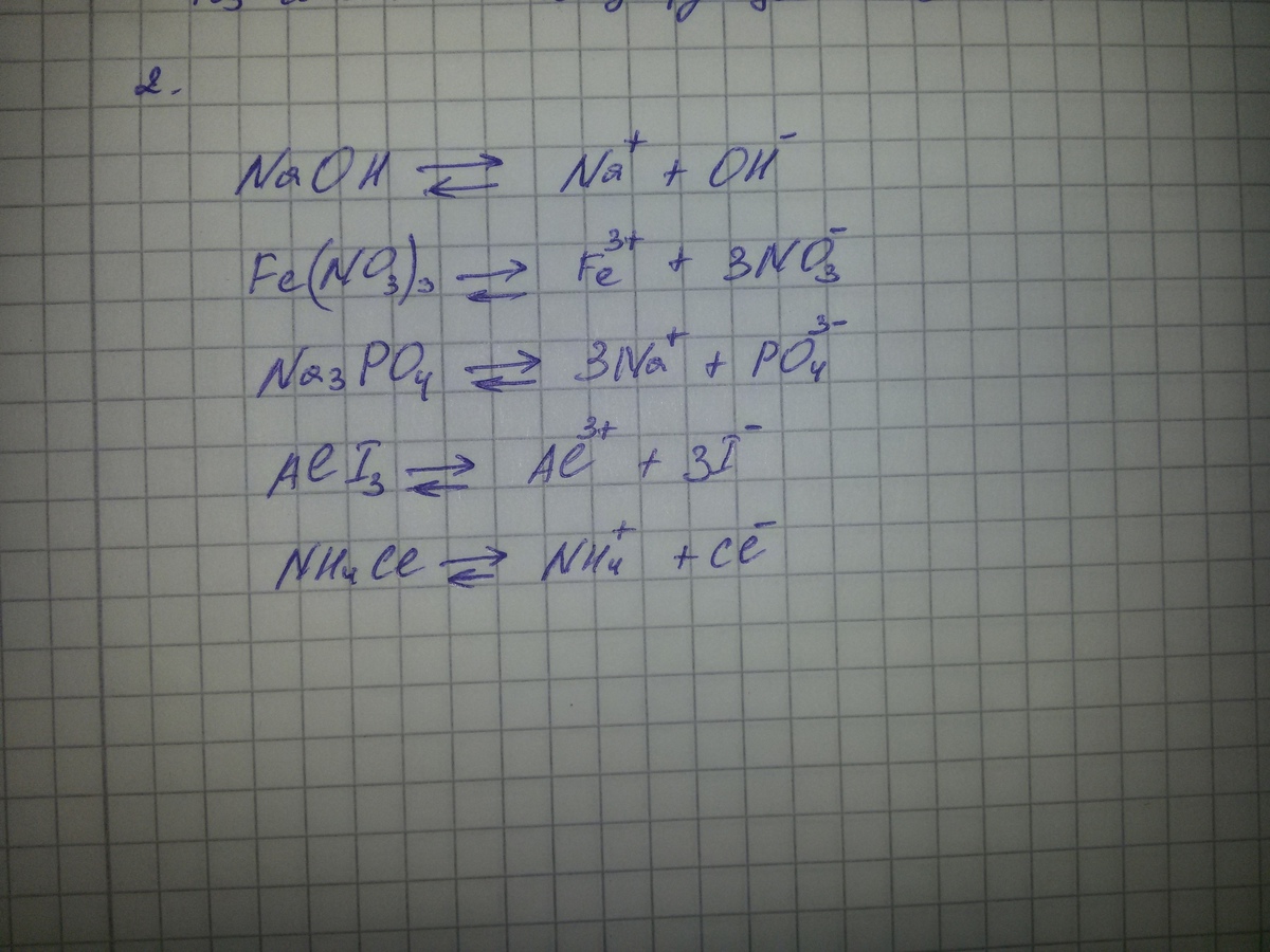 NaOH, Fe(NO3)3, Na3PO4, ALI3, NH4CL