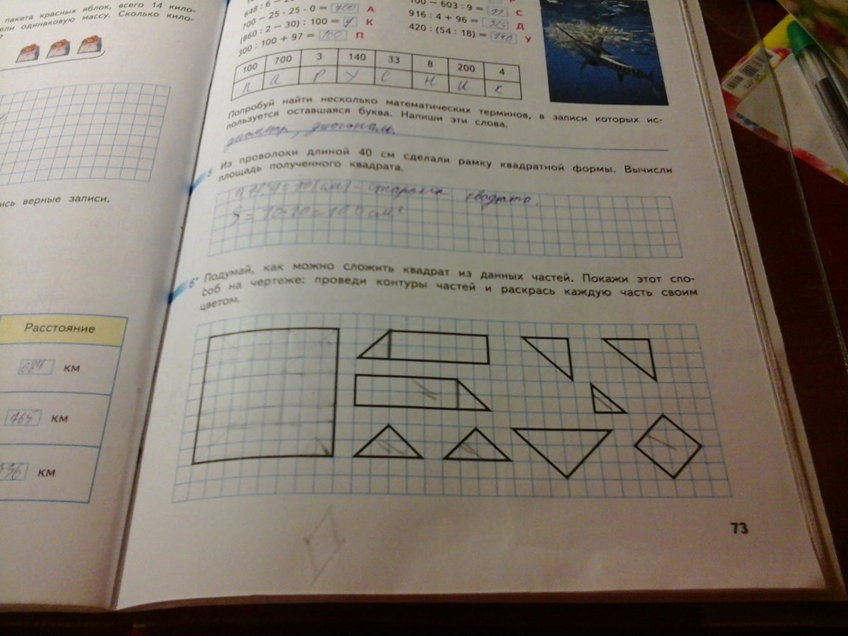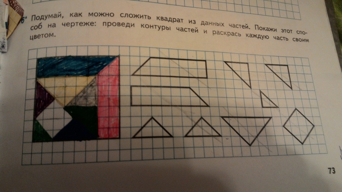 Подумай, как можно сложить квадрат из данных частей. Покажи этот