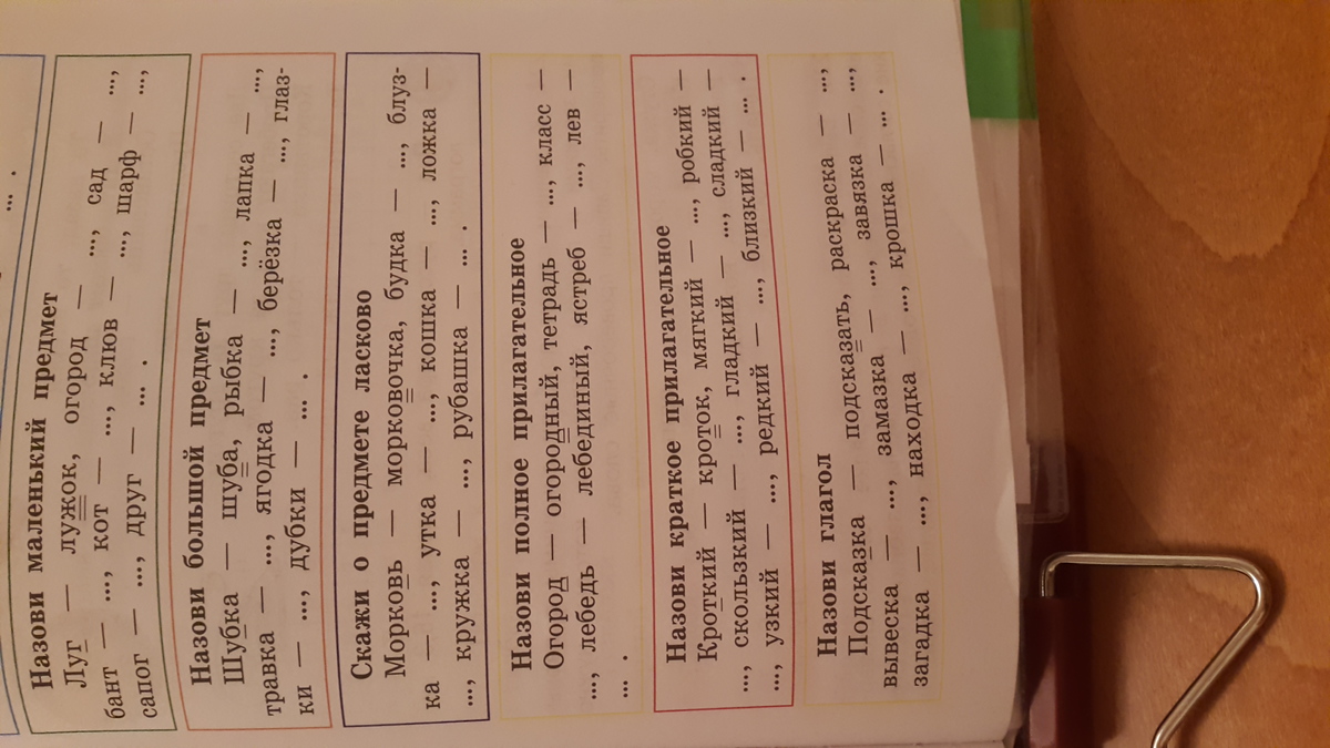 Рыбка-рыба,лапка-лапа,травка-трава,ягодка-ягода,березка-береза,глазки-глаз,дубки-дуб.