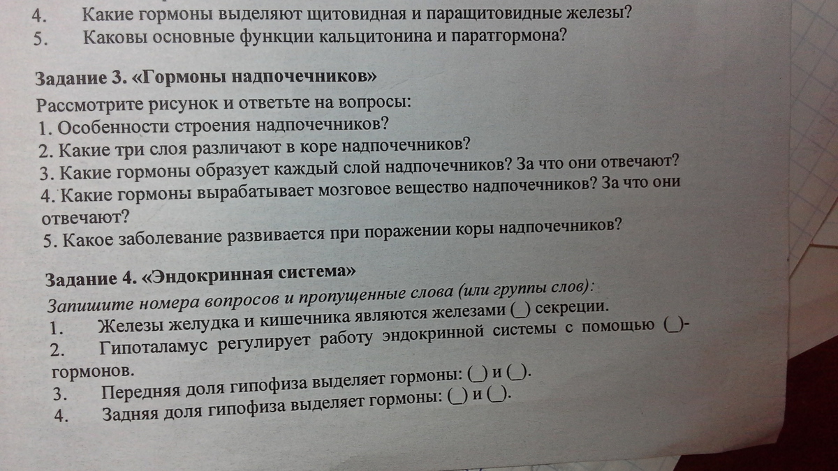 1. строение надпочечников.надпочечники располагаются на вершинах почек.окружены жировой прослойкой и фасцией( соед.ткань с коллагеновыми волокнами).каждый надпочечник сост из двух структур:внешняя кора и внутреннее мозговое вещество.2)три зоны :наружная - клубочковая, средняя - пучковая и внутренняя - сетчатая.3)клубочковая зона вырабатывает альдостерон,корикостерон и дезоксикортикостерон,которые отвечают за регулирование кровяного давления.пучковая зона вырабатывает глюкокортикоиды-11-дезоксикортикостерон,костикостерон и кортизол. кортизол является главным гормоном и отвечает за регуляцию жиров,белков и углеводов организме,а также обеспечивает активность других гормонов(глюкагон ,катехоламин)сетчатая зона вырабатывает андрогены(андрогены - стероидные гормоны,отвечающие за развитие у обоих полов за появление вторичных признаков.)4)Мозговое вещество надпочечников синтезирует катехоламины: адреналин, норадреналин и дофамин. Норадреналин являются нейромедиаторами и участвуют в передаче нервных импульсов в симпатической нервной системе. адреналин ускоряет обмен веществ, способствуя расщеплению жиров, способствует повышению температуры тела, которое связано со сгоранием жиров. дофамин это нейрогормон (выполняет функции гормона и нейромедиатора), из которого впоследствии синтезируются катехоламины 5)на самом деле много заболеваний могут быть,например-синдром кушинга-доброкачественные и злокачественные опухоли коры и первичная гиперплазия (нарушение выработки кортизола). ну или базедова болезнь (из учебника)