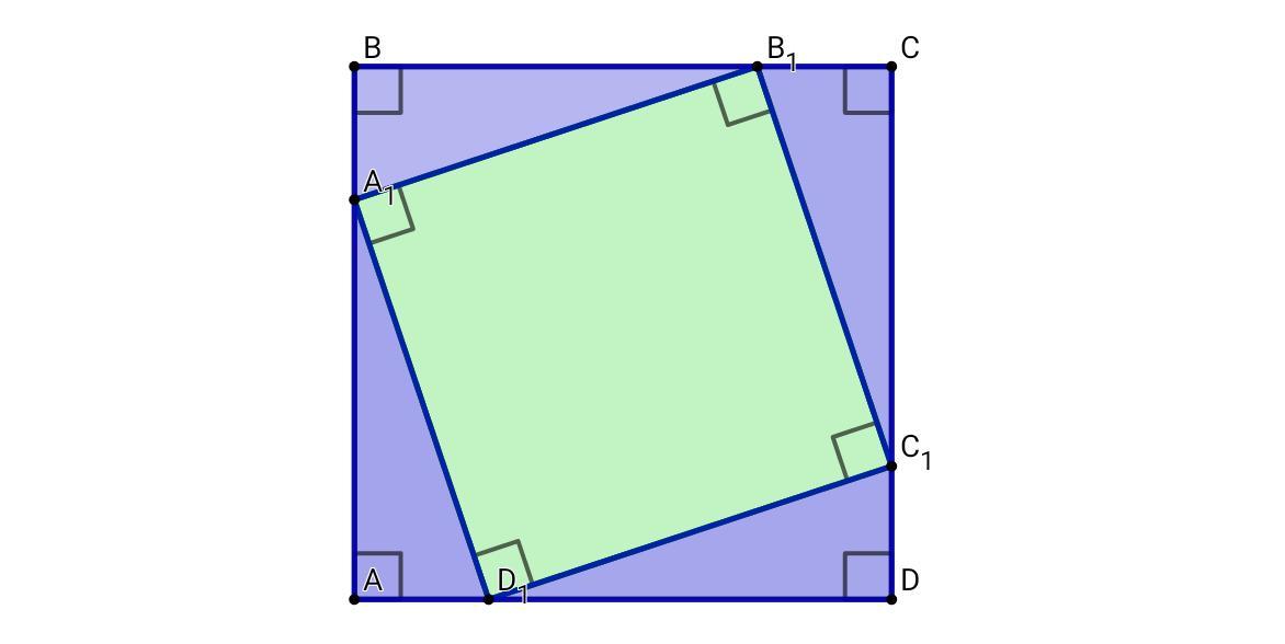 Таким образом, ΔА₁ВВ₁ = ΔВ₁СС₁ = ΔС₁DD₁ = ΔA₁AD₁ по двум катетам ⇒ ∠А₁В₁В = ∠АА₁D₁ , ∠BA₁B₁ + ∠A₁В₁B = 90° = ∠BA₁B₁ + ∠AA₁D₁