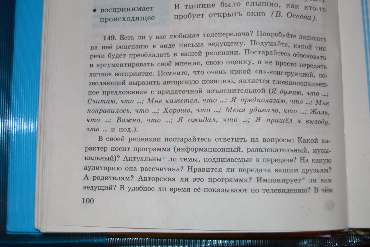 Помогите пожалуйста!))*УПР 149. НАПИСАТЬ РЕЦЕНЗИЮ О ТЕЛЕПЕРЕДАЧЕ)