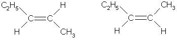 на картинке изомеры: 1) транс-пентен-2; 2) цис-пентен-2