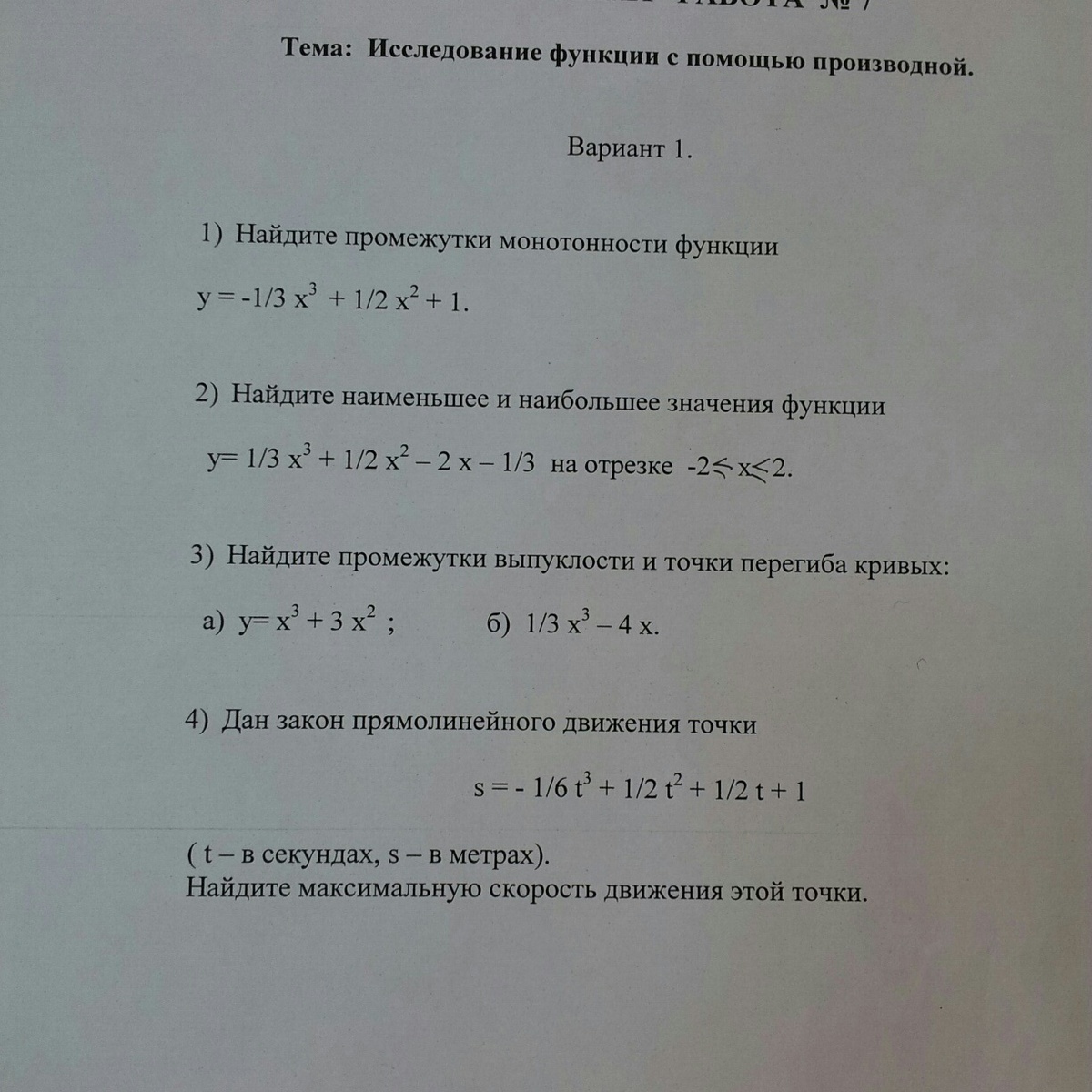 3) http://znanija.com/task/928842 - переписывать не буду. Если умеешь брать производные, все ОЧЕНЬ просто. Нужно найти, при каких х вторая производная не больше нуля (там функция выпукла вверх=вогнута), не меньше нуля (выпукла вниз=выпукла). Точки, в которых знак меняется - точки перегиба.