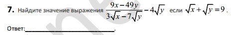 Выражение (3√х-7√у) сокращается со знаменателем и остается (3√х+7√у)