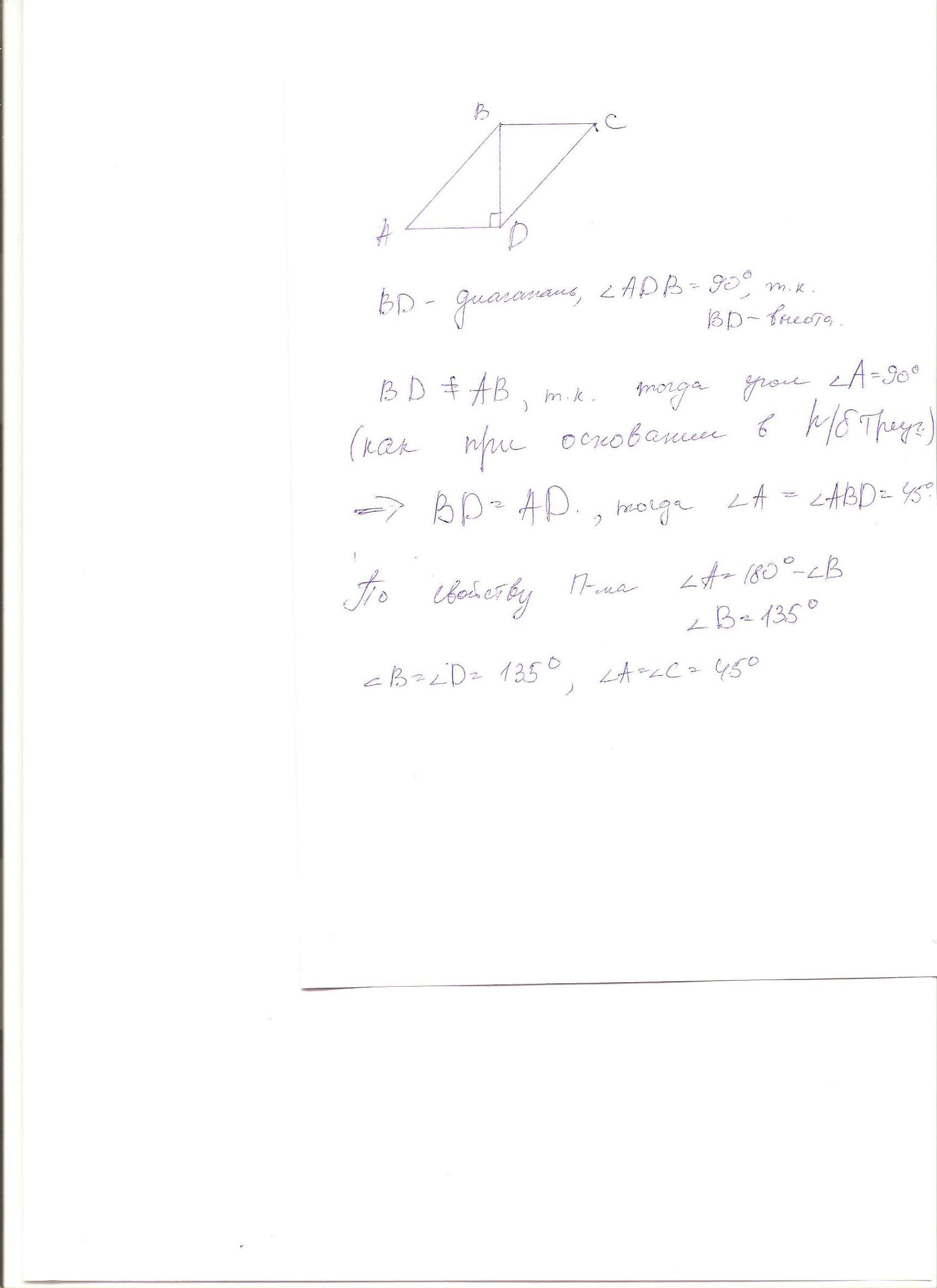 найдите углы параллелограмма,если одна из его диагоналей является высотой и равна одной из сторон.Помагите,плиз