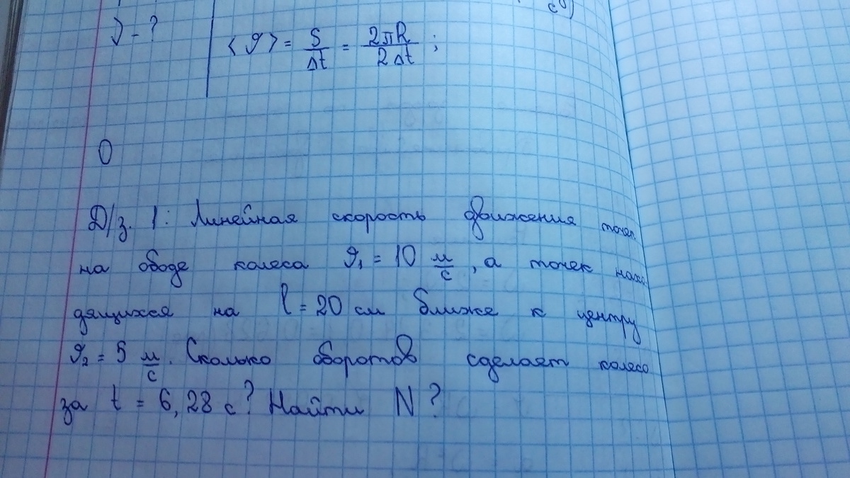точки находятся на одном радиусе значит верно равенство:. v1/v2=(R+0,2)/R, и за равное время точки сделают одинаковое количество оборотов N1=N2.