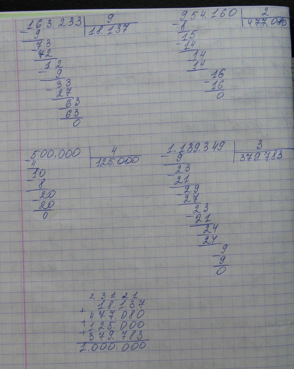 163.233 : 9 + 954.160 : 2 + 500.000 : 4 + 1.139.349 : 3 =