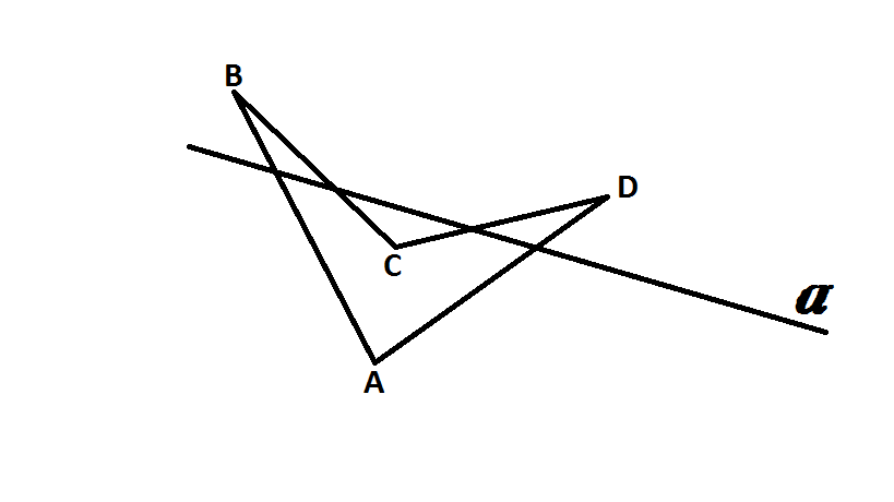 На рисунке: ABCD - четырёхугольник, а - прямая, пересекающая все четыре его стороны.