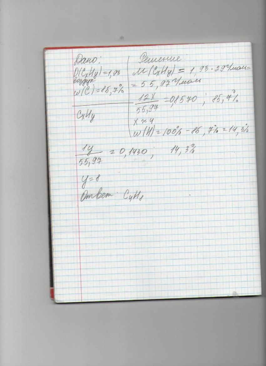 вычислите молекулярную формулу углеводорода в котором массовая доля углерода составляет 85.7 его плотность по воздуху равна 1.93