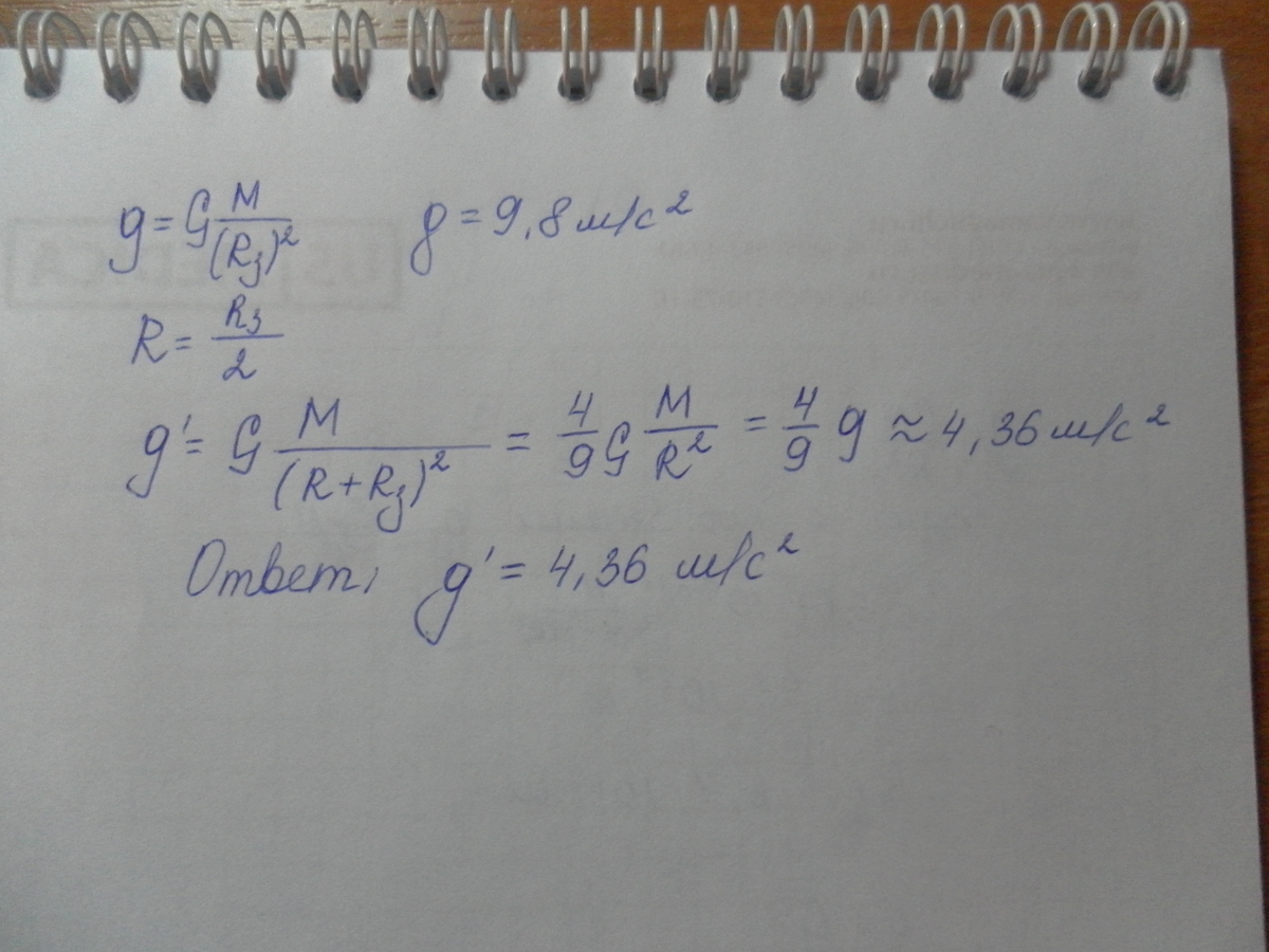 Рассчитайте ускорение свободного падения на высоте , равной радиусу Земли. Нужно решить двумя способами