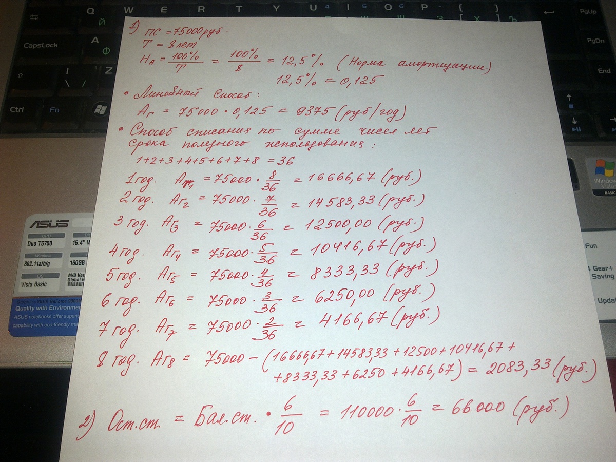 первоначальная стоимость станка 75 000 руб , срок службы 8 лет. Определить годовую величину амортизационных отчислений линейным способом и способом списания по сумме чисел лет.