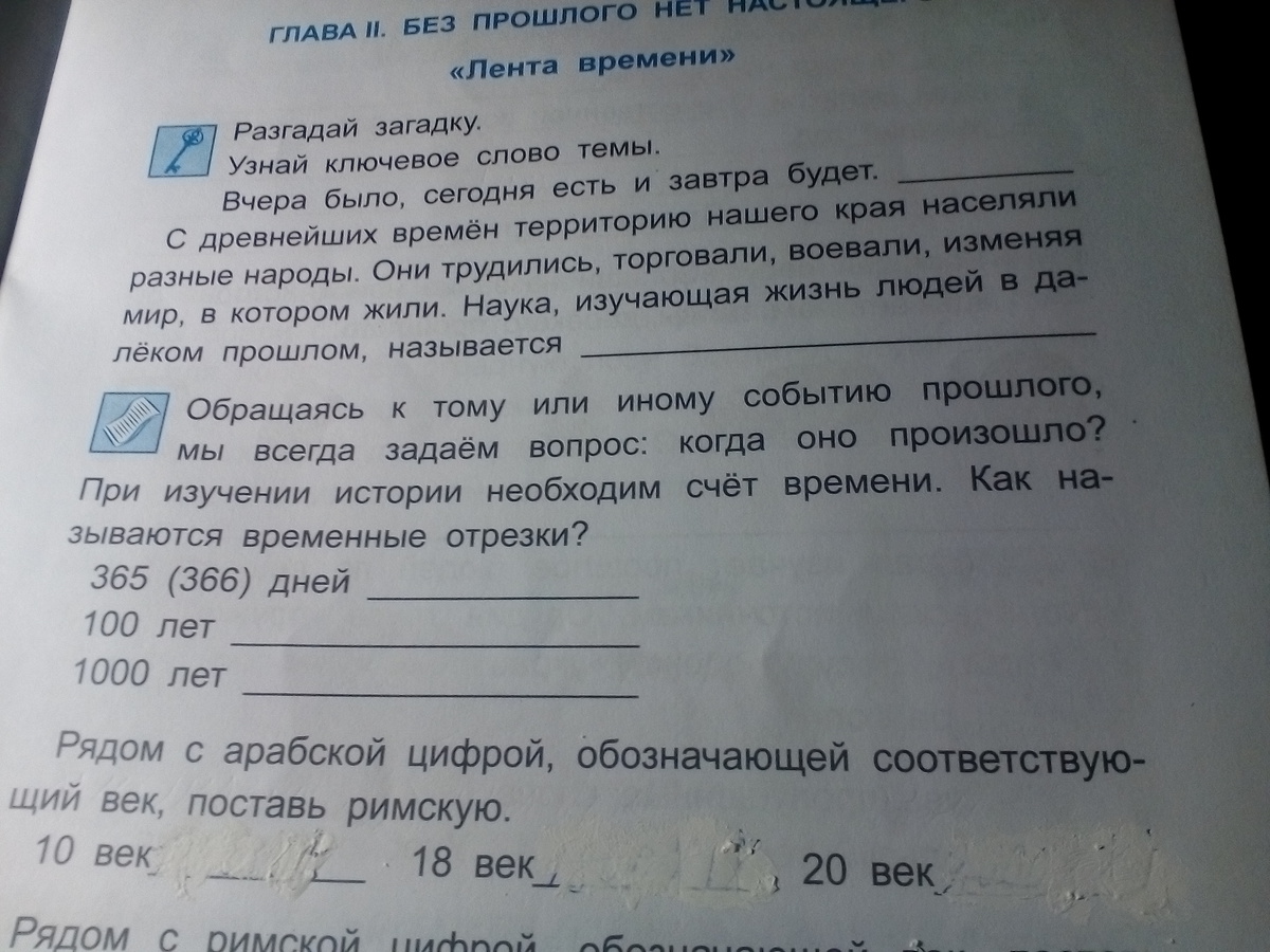 1). Загадка . Ответ -время. Наука называется -история. 2). 365 дней -год, 100лет -век, 1000лет -тысячелетие или милениум. 3). 10 век -Х, 18век -ХVIII, 20 век -ХХ