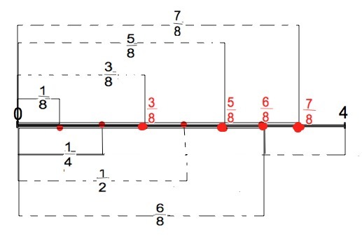 Они и будут соответствовать обыкновенным дробям 3/8, 5/8, 6/8, 7/8.