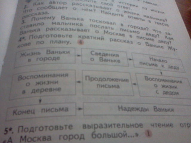 Жил-был Ванька.Проживал в славной Москве.Он очень её любил.Сам Ванька был шаловливым непоседой и драчуном.У него было мало друзей из-за его характера.Единственным настоящим другом для него был дедушка.Но дед жил в деревне,поэтому Ваня часто писал ему письма.Они все начинались примерно одинакого:-"Привет,дорогой дедуля!я по тебе очень скучаю.Я часто вспоминаю твои сказки и рассказы,мне очень их нехватает.Надеюсь на следущее лето родители опять отправят меня к тебе,в деревню.Я скучаю по Тузику и по деревенским приятелям.Привет бабуле.Твой Ванька."Ванька всегда очень грустил когда писал письма,он надеялся что родители все таки отправят его на лето к деду и очень ждал этого момента.