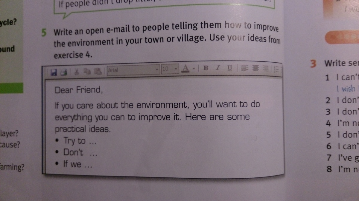 try to use your car not very often as cars pollute our air. do not throw your rubbish everywhere. do not make a fire in forests. if we protect our planet we will be healthy and happy