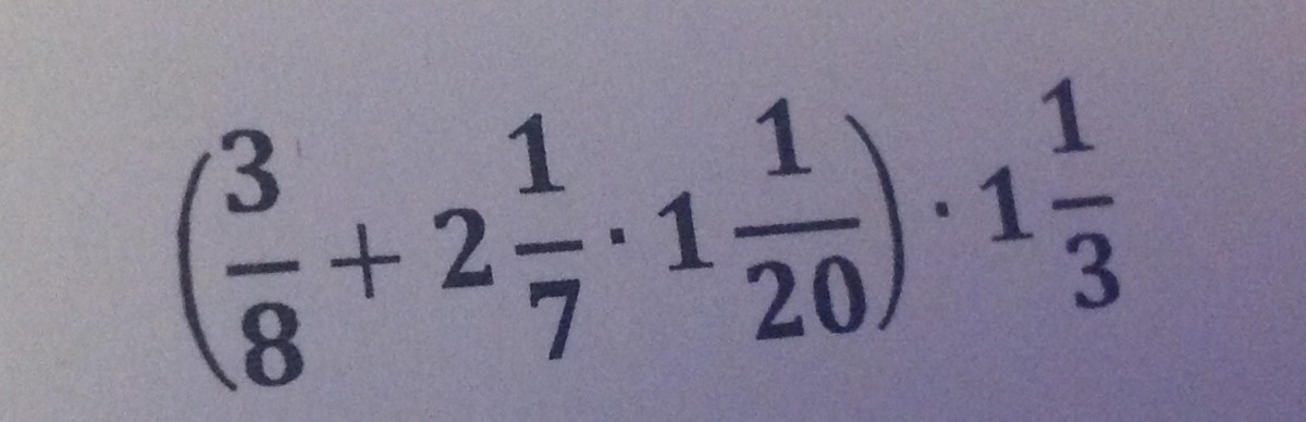 Сначала решаем то, что в скобках. Но в скобках в таком порядке: сначала умножаем, потом сумму находим.Потом уже то, что получили в скобках умножаем на 1 1/3.
