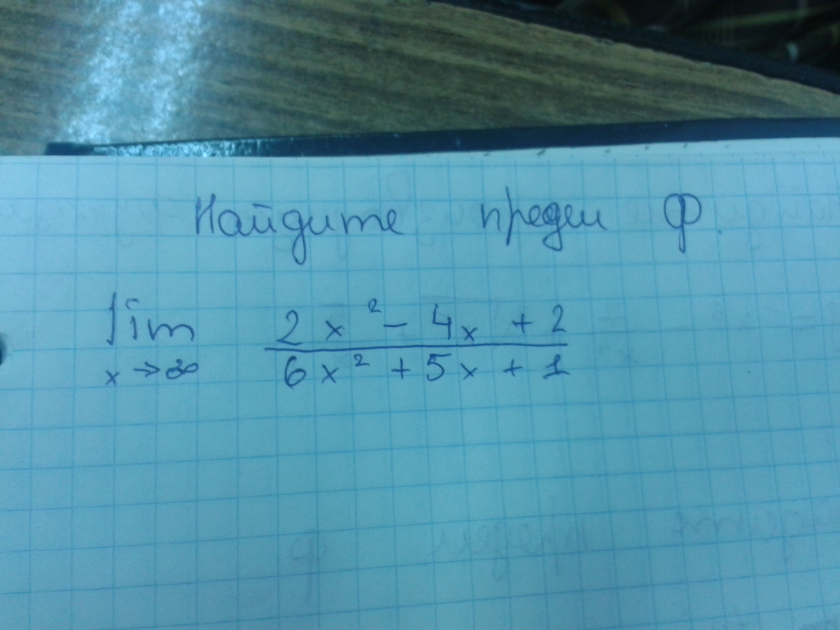 lim_{x to infty} (2-4/x+2/x^2)/(6+5/x+1/x^2)=2/6=1/3
