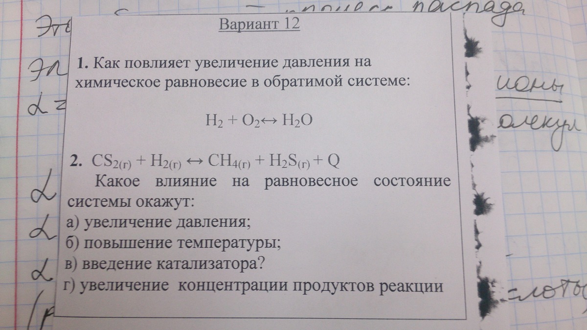 1. давление не повлияет на смещение равновесия