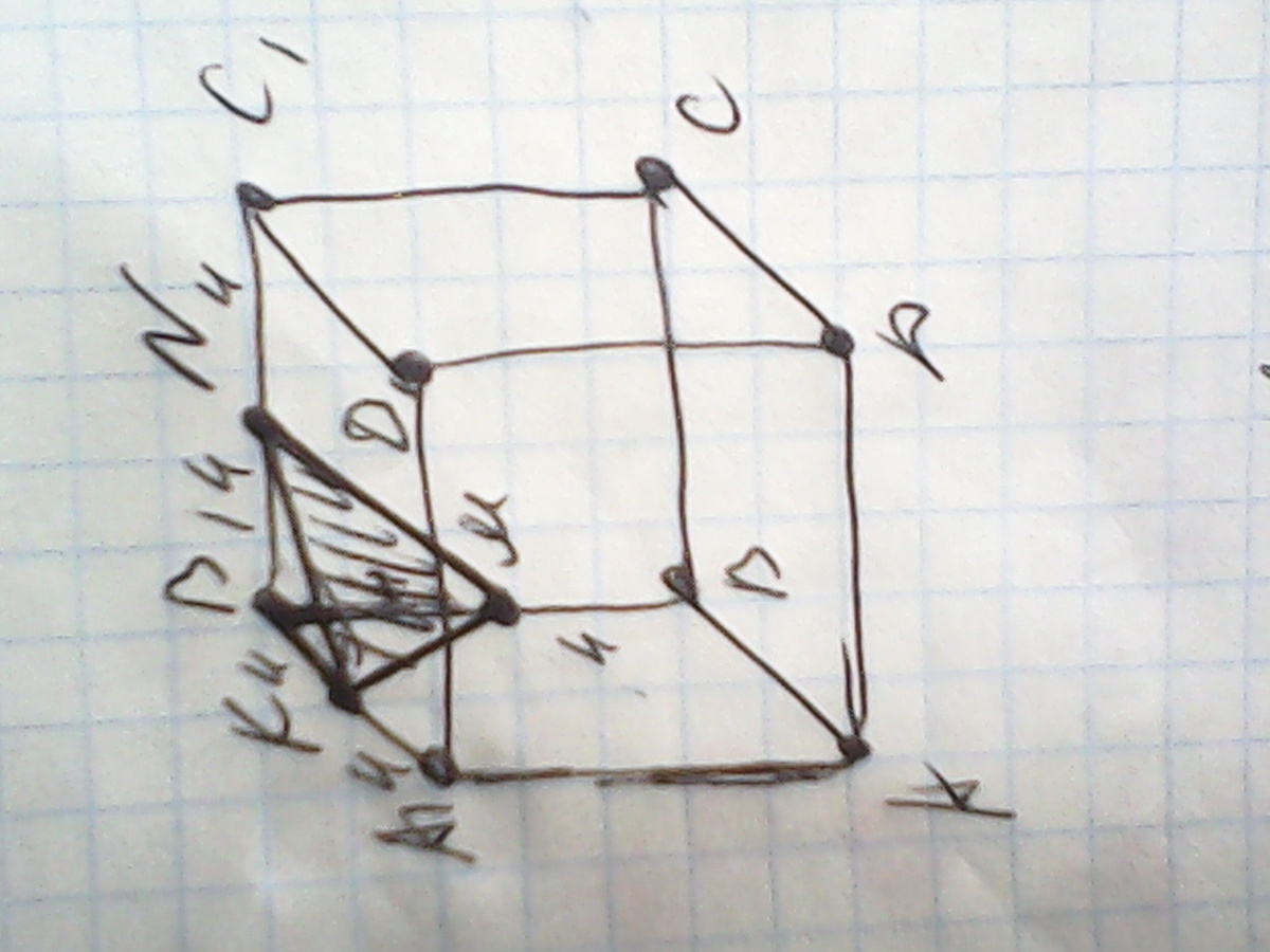 построить сечение куба плоскостью проходящей через три данных точки K,N,M