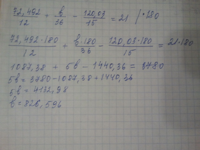 72,492 ÷ 12 + b ÷ 36 - 120,03÷15=0,21