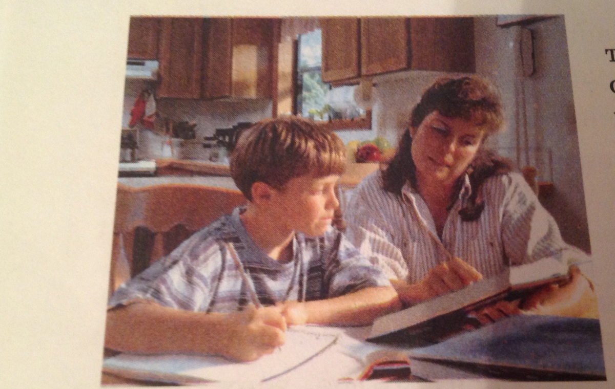 это может быть мама с сыном. Мама помогает сыну (примерно 6 класс) делать уроки.