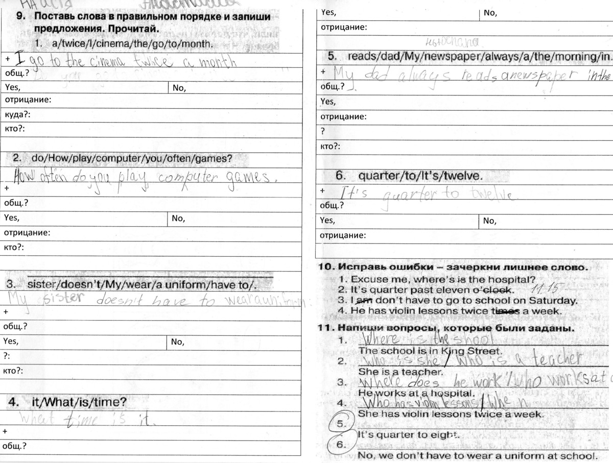 В 11 упр. 4 вопрос: How often does she have violin lessons?