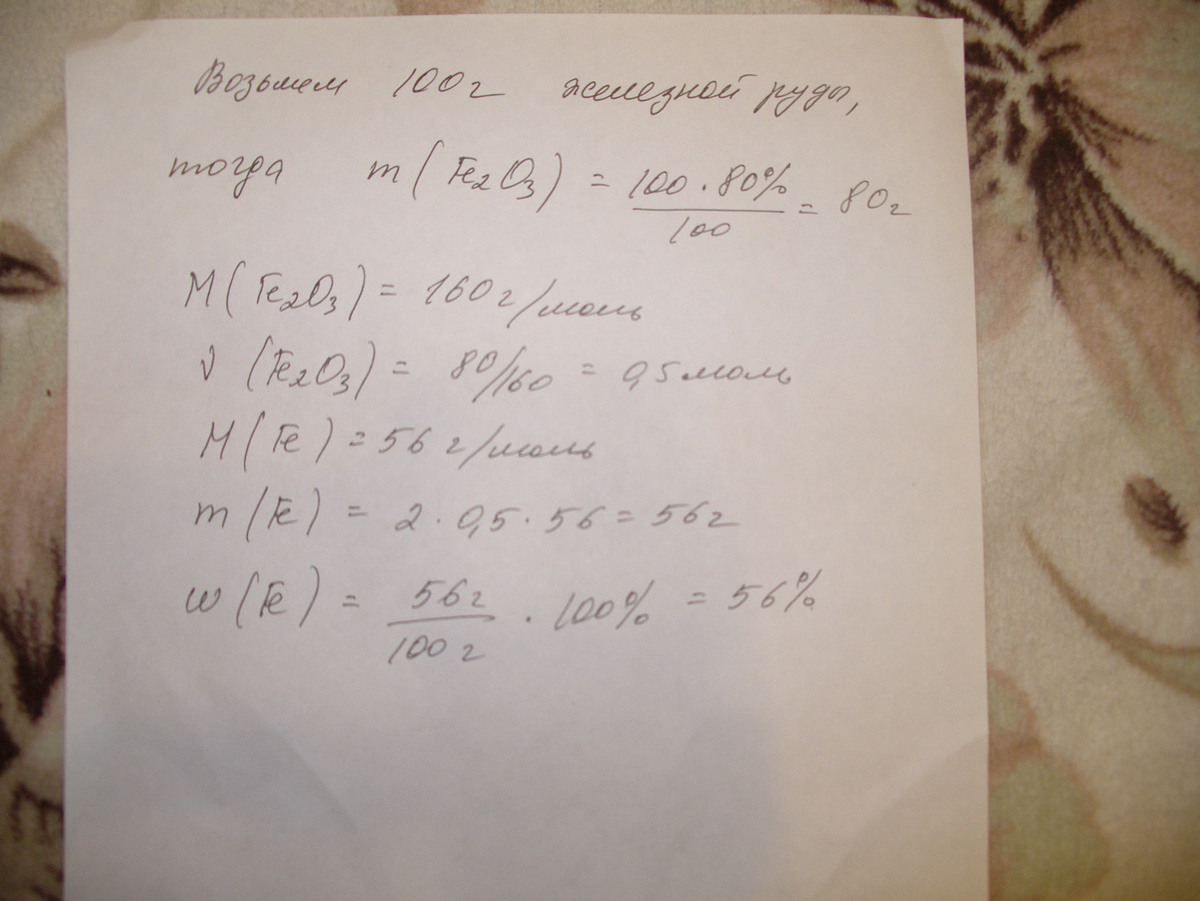 Массовая доля оксида железа 3 в железной руде составляет 80%. рассчитайте массовую долю атомов железа в руде. примеси не содержат железо.