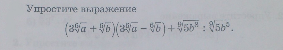 (3sqrt[6]{a}+sqrt[6]{b})*(3sqrt[6]{a}-sqrt[6]{b})+sqrt[9]{5b^{8}}:sqrt[9]{5b^{5}}