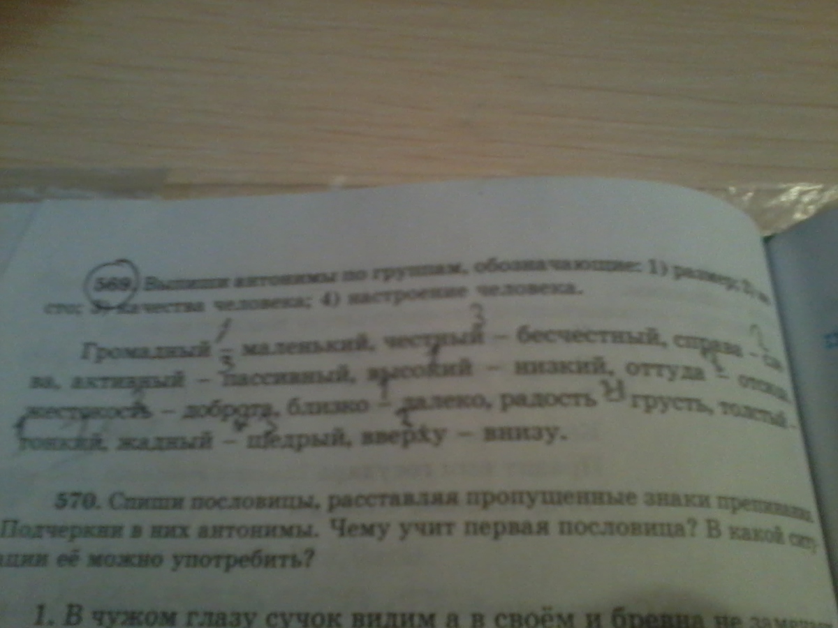 помогите выпишите антонимы по группам обозначающие 1)размер 2)местах 3)качество человека 4)настроение человека