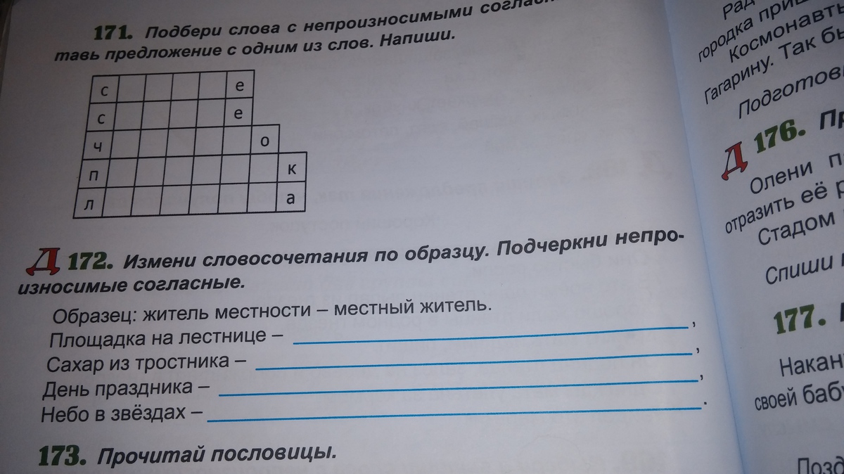 Упр 171. Солнце, сердце, честный, праздник, лестница.