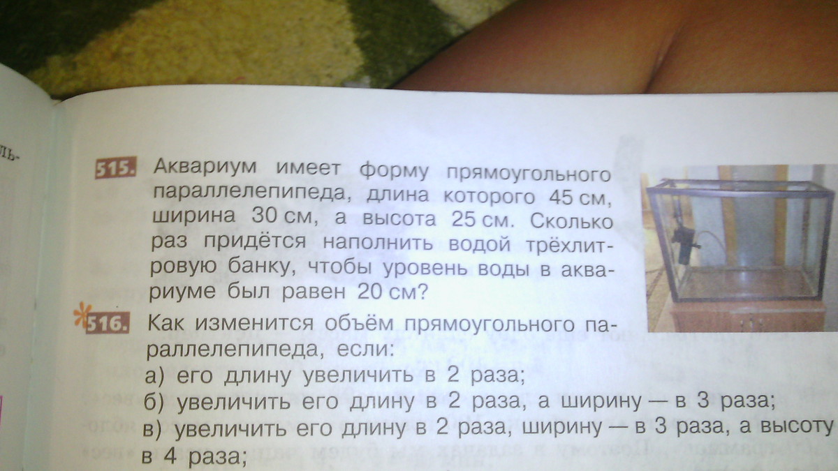 45*30*20=27000 см³ = 27000 : 10³ = 27 дм³ или литров надо наполнить
