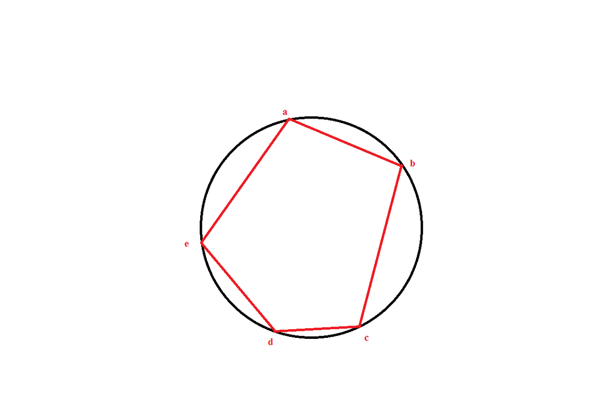 постройте любой пятиугольник abcde,все вершины которого лежат на окружности.выполните необходимые измерения и вычислите его периметр. решение.ab=?.bc=?.cd=?de=?ae=?ответ:?