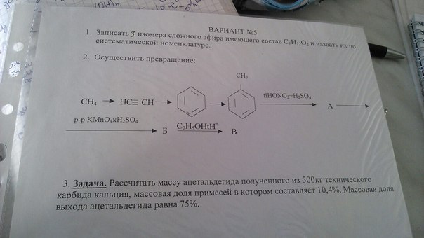 2)3HC≡CH -> C₆H₆ (t=400-600⁰C, катализатор: Cакт)