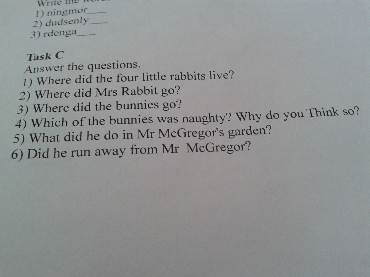 4)Peter, becouse he ran straight away to Mr. McGregor's garden