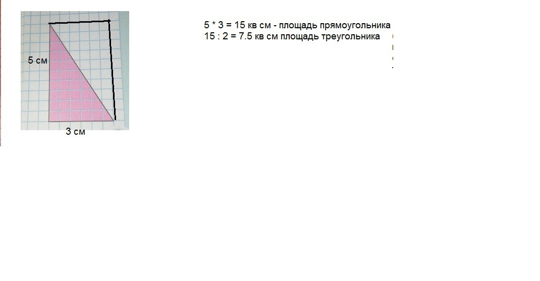 Помогите!!!!!!!Начерти такой треугольник,дополни его до прямоугольника, найди площадь прямоугольника и каждого треугольника.