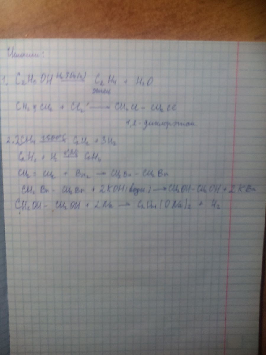 CH4 -->C2H2 --> C2H4 --> C2H4Br2 --> C2H4(OH)2 --> C2H4(ONa)2