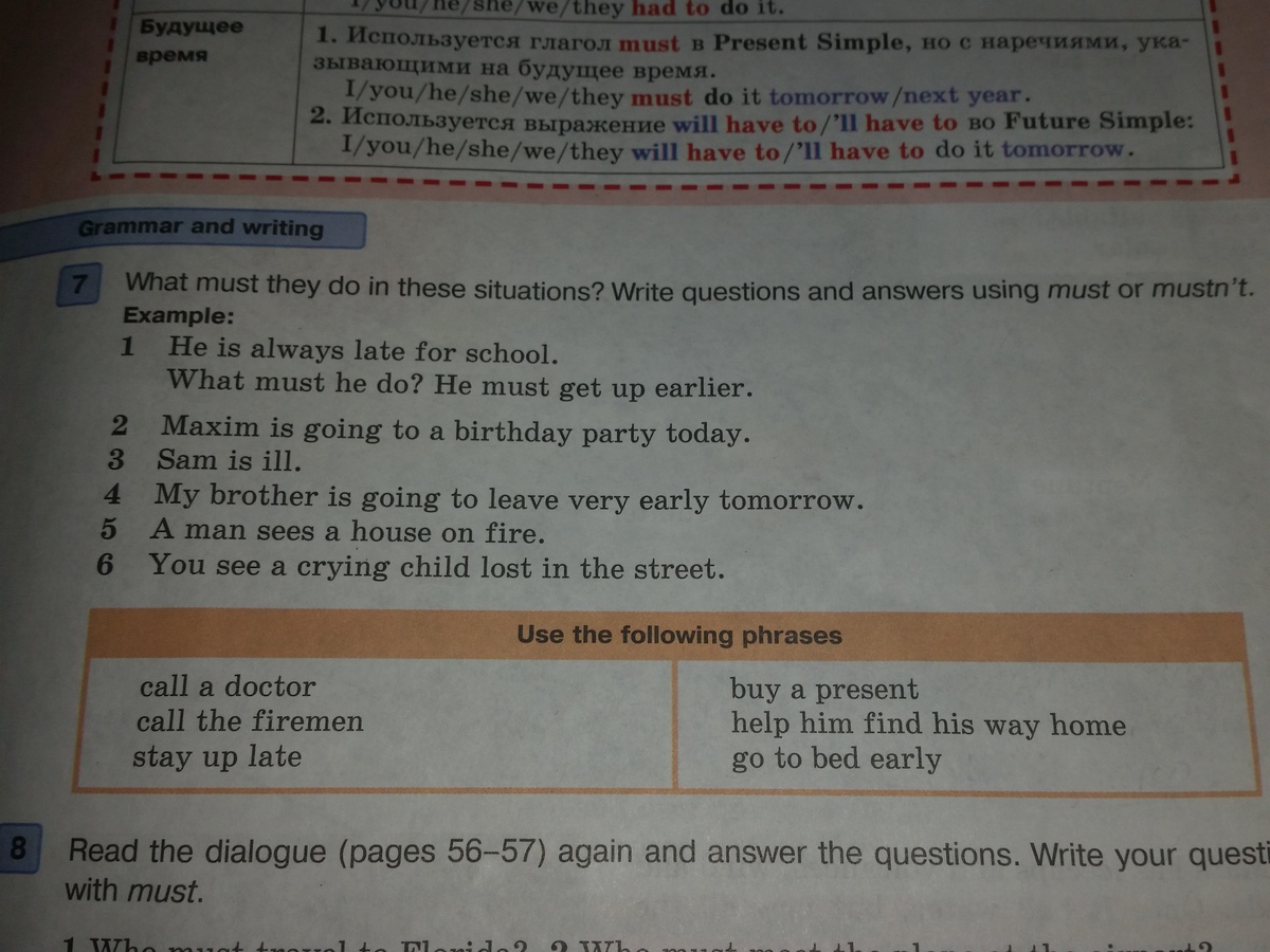 My brother is going to leave very early tomorrow. What mustn't he do? He mustn't stay up late.