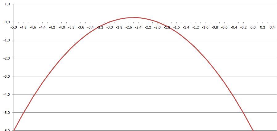 Если взглянуть рисунок, то на нем отчетливо видно, что график Вашей функции пересекает ось ОХ (то есть обращается в ноль) при х = -3 и х = -2. Это и будут корни уравнения