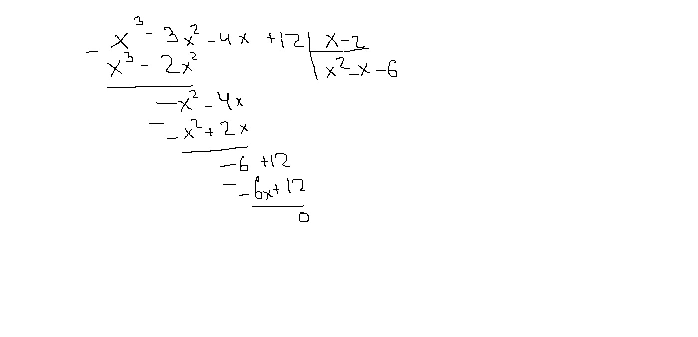 Ищем свободный делитель последнего чиста 12 ( 1 , -1 , 2 , -2 , 3 и т.д ) . За теоремой Безу делим в столбик на х-2 ( так как 2 подходит ) выйдет x^2-x-6 , дальше за т.Виета или дискриминантом , х1 = 3 , х2 = -2