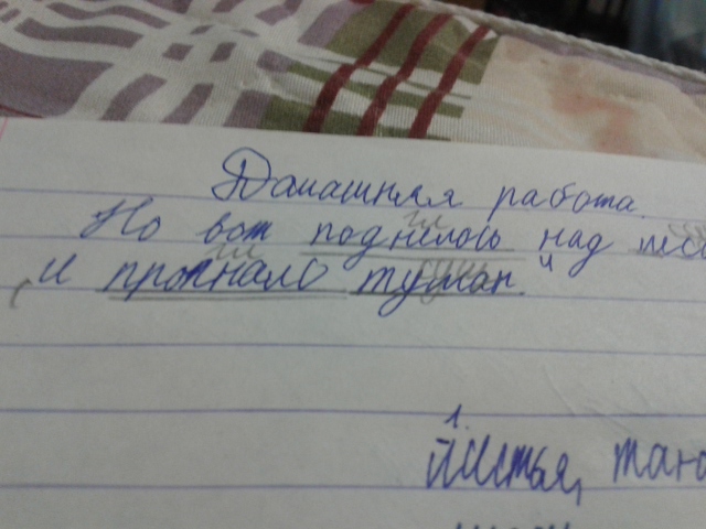 Но вот поднялось (сказуемое) над лесом (дополнение) солнышко (подлежащее) и прогнало (сказуемое) туман (дополнение).