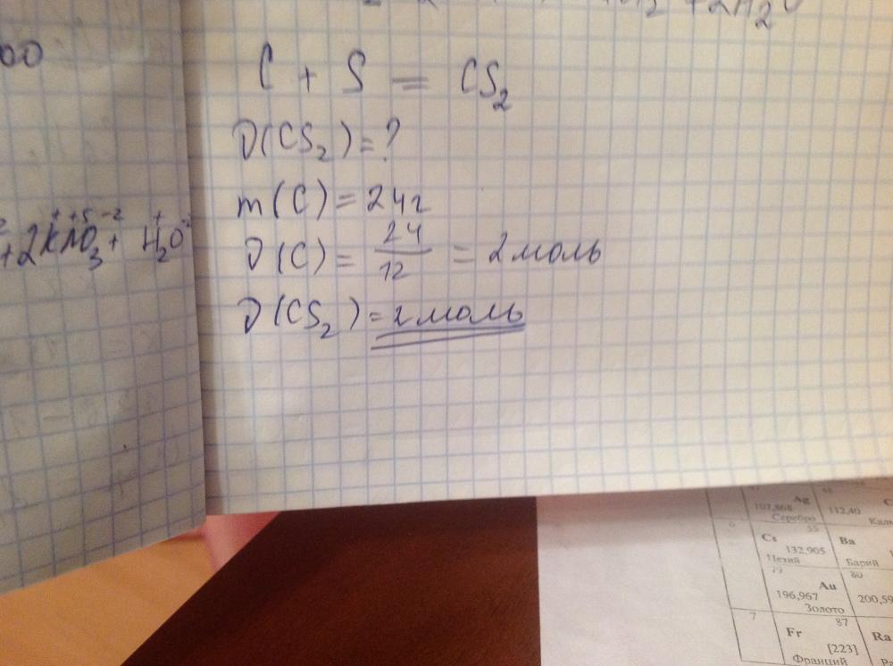 Задача по схеме C+S=Cs2 вычислите количество вещества сероуглерода , который образуется при взаимодействии серы с 24 г углерода