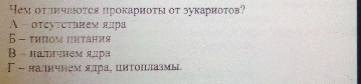 Прокариоты-бактерии,которые не имеют ядра,а эукариоты-клетки всех остальных организмов-грибов,растений,животных-содержат хорошо оформленное ядро.