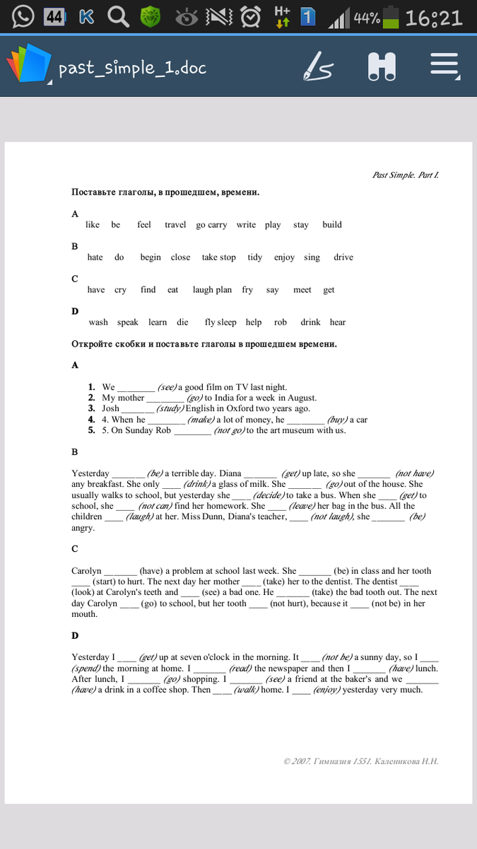 B) was, got, didn't have, drank, went, decided, got, couldn't, leaved, laughed, didn't laugh, was.