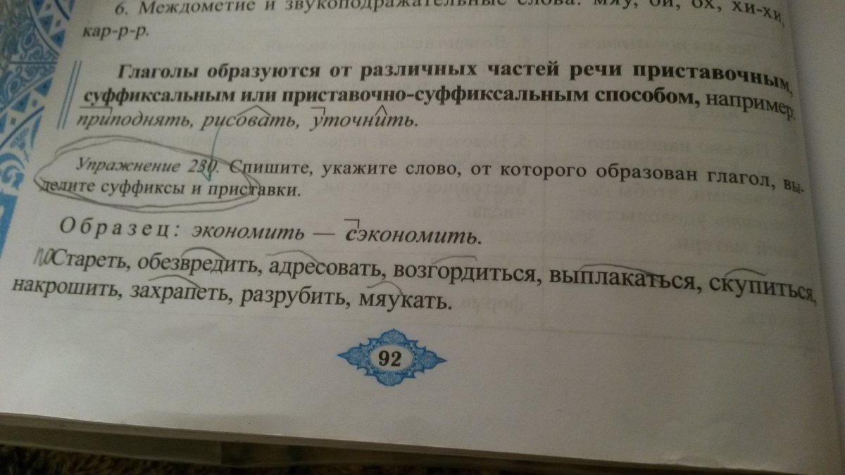 Постареть - приставка (по),стар от которого оно образовалось ет суффикс,обезвредить-2 приставки-(о),(без),вред от которого оно образовалось,суффикс (ит), адресовать приставки нету, адрес от которого образовалось (ов) суффикс, возгордиться-насчёт приставки незнаю,но от которого образовалось (горд),(ит)-суффикс,выплакаться- приставка незнаю,(плак) от которого образовалось,суффикс (ат),скупиться-(с)-приставка,куп от которого образовалось,суффикс (ит) ,накрошить-(на)-приставка,крош от которого образовалось,(ит)-суффикс,захрапеть-(за)-приставка,храп от которого образовалось,(ет)-суффикс,разрубить-(раз) приставка,(руб) от которого образовалось,(ит)-суффикс,мяукать-(мяу)-от которого образовалось,(к)и(ат) суффиксы.