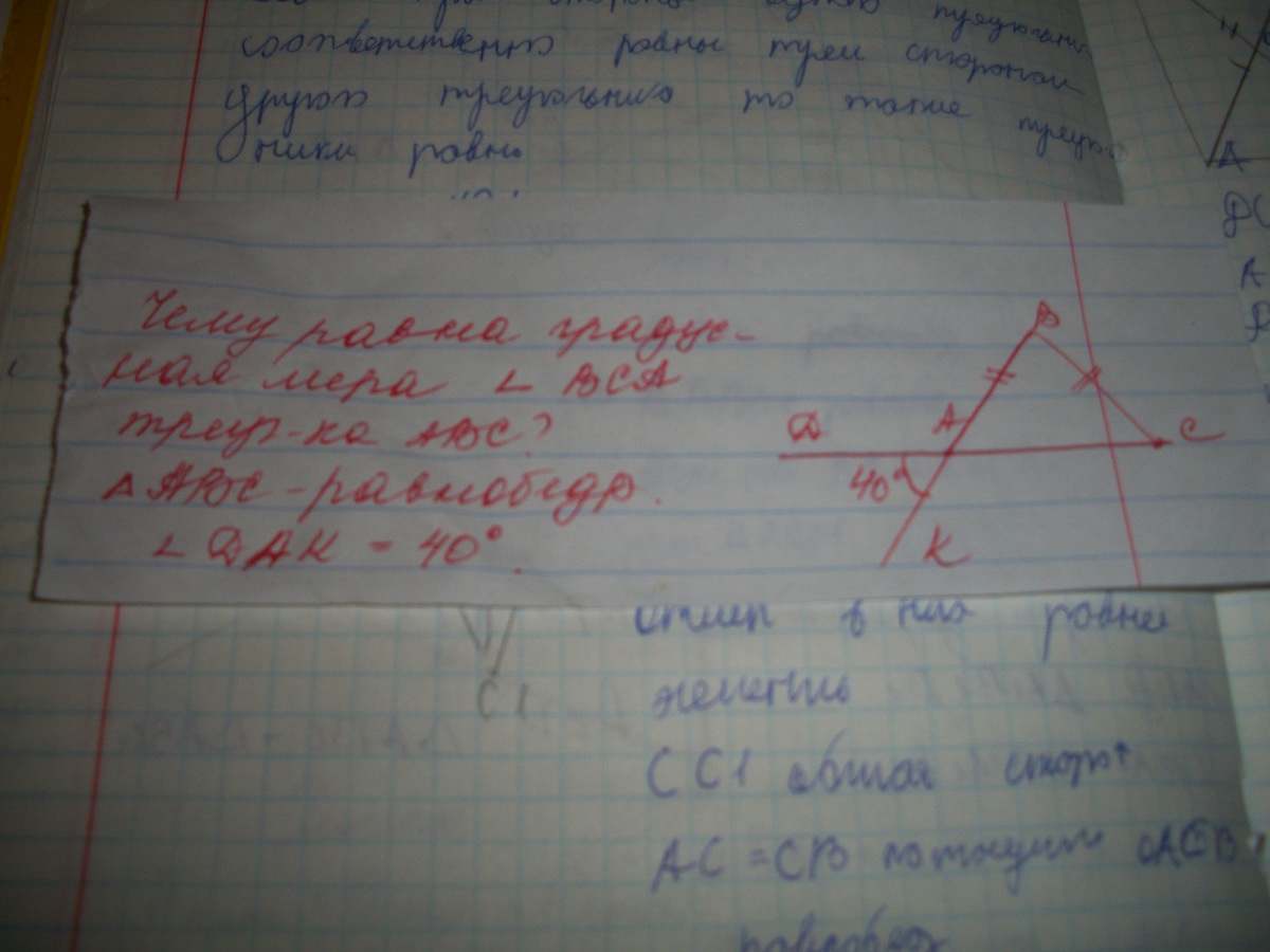 Угол ABC = 180 - ( 40 + 40 ) = 100 °