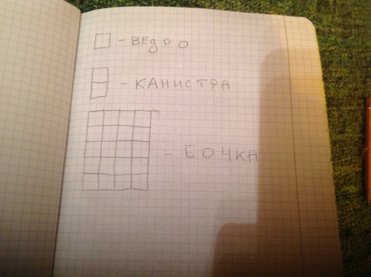ПОСТРОЙ ДИАГРАММУ КАТОРАЯИЛЛЮСТРИРУЕТ УСЛОВИЕ ДАННОЙ ЗАДАЧИ В КАНИСТРУ ПАМЕЩАЕТСЯ-2ВЕДРА А В БОЧКУ -20 ТАКИХ ВЁДЕР ЗАДАЧИ 3 КАК СДЕЛАТЬ ДИАГРУМУ К ЭТОЙ ЗАДАЧИ